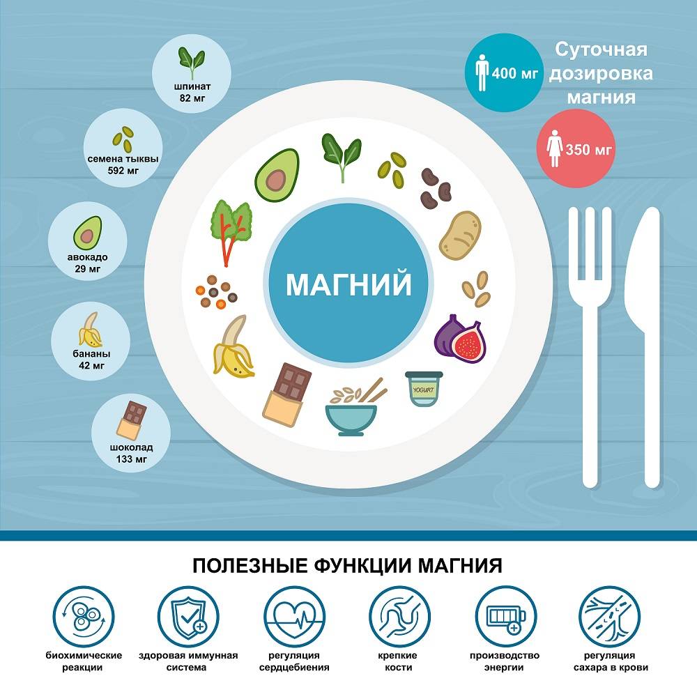 Магний также обеспечивает правильную работу всех мышц, в том числе и сердечной. Его основная роль — регуляция работы нервной системы, а значит всей жизнедеятельности. Металл участвует в углеводно-белковом обмене, энергетических процессах, нормализует кровообращение. Дефицит обоих элементов провоцирует развитие кардиологических, неврологических, желудочно-кишечных, урологических болезней.