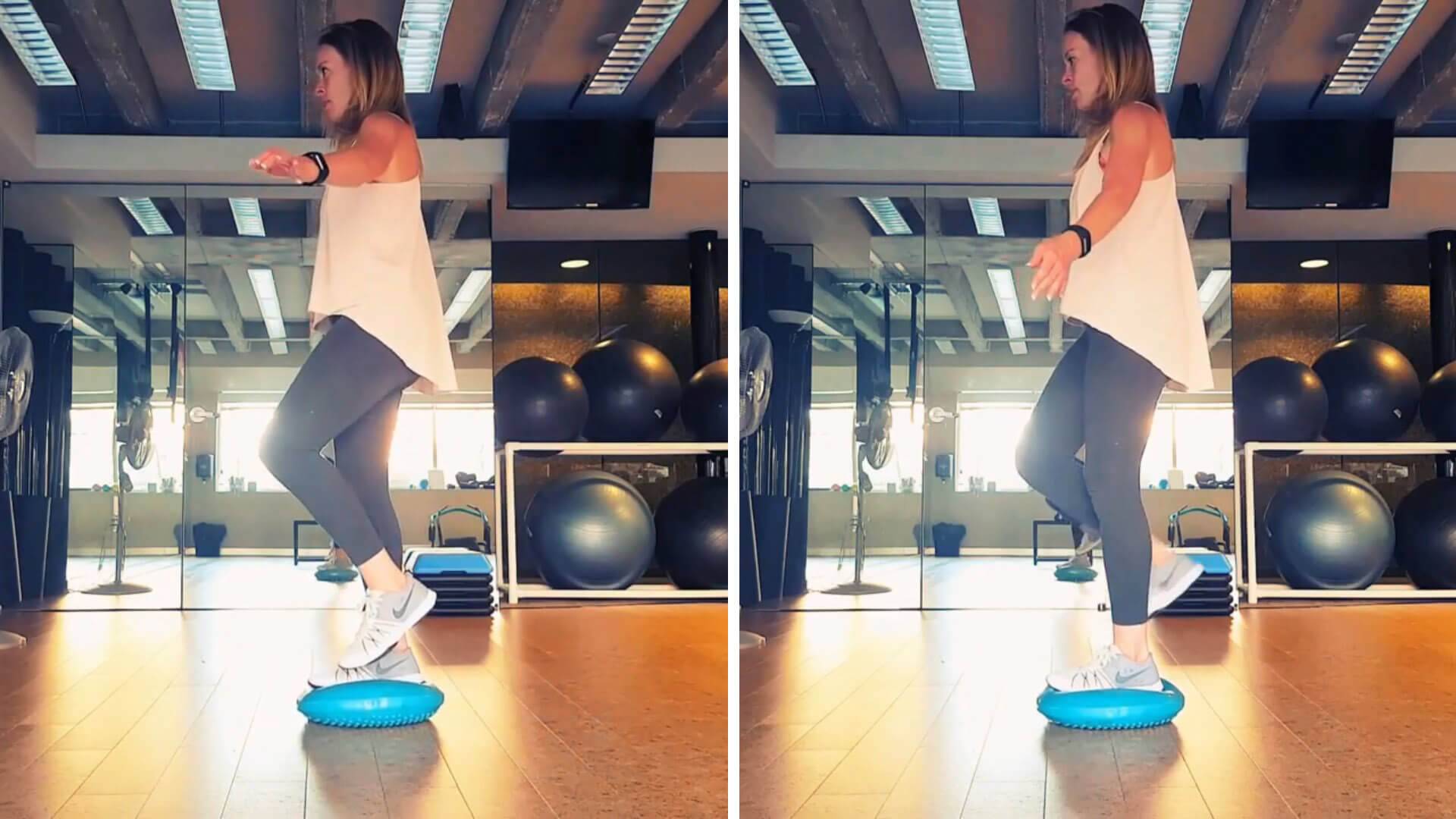 - Прыжком аккуратно поменяйте стопу, оставаясь на подушке.