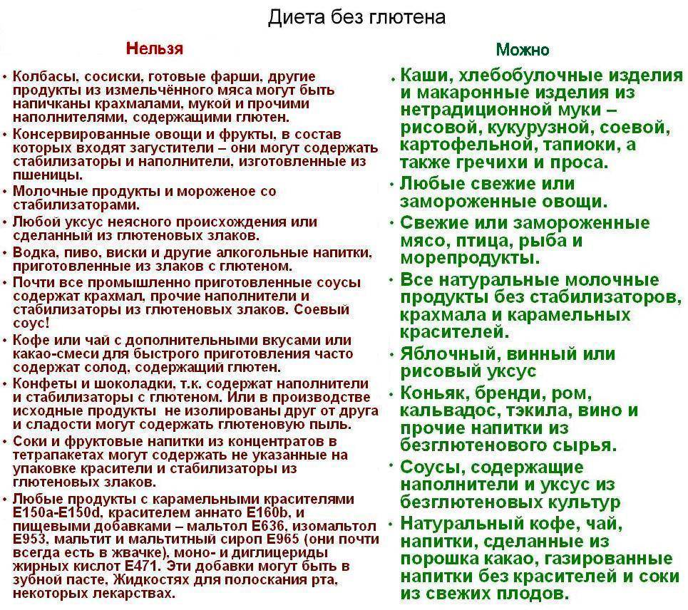 Соблюдение безглютеновой диеты дает улучшение состояния у пациентов с указанными расстройствами в 90% случаев. Правда стоит отметить, что полностью исключить глютен из рациона сложно. Клейковину добавляют во многие полуфабрикаты.