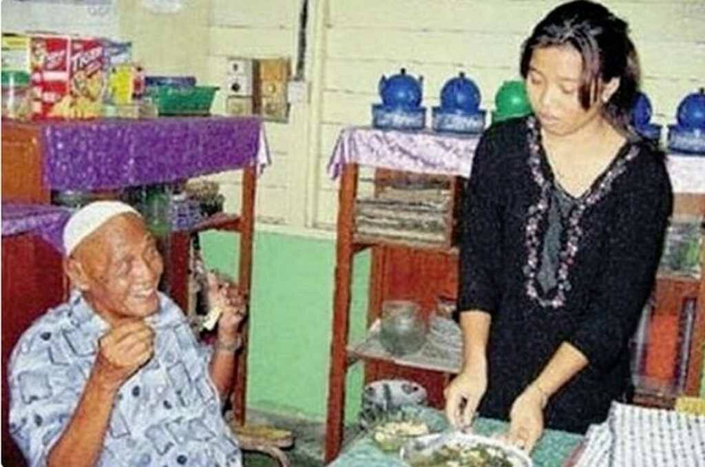 Пара, в которой разница в возрасте супругов составляет целых 83 года, проживает в Малайзии. На момент свадьбы жениху было 105 лет, а его невесте всего 22. Не смотря на огромную разницу в возрасте, супруги не считают себя несчастными. 105-летний муж старается вести активный образ жизни и не отставать от своей юной жены.