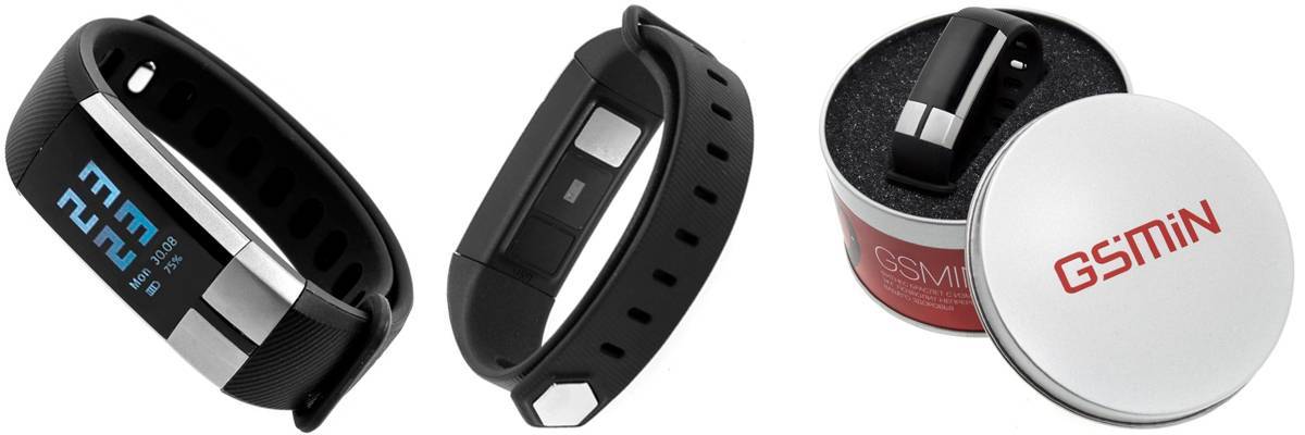- GSMIN CD01. Спортивный браслет этой модели выпущен на рынок в 2019 году. В нем есть возможность измерения давления и пульса. При движении он предоставит сведения о состоянии здоровья: частоте сердечного ритма, артериальном давлении. С его помощью можно контролировать фазы сна, пройденные шаги, расстояние, потраченные калории. Помимо этого, в устройстве есть множество датчиков, программное обеспечение, с помощью которого все сведения передаются на смартфон.