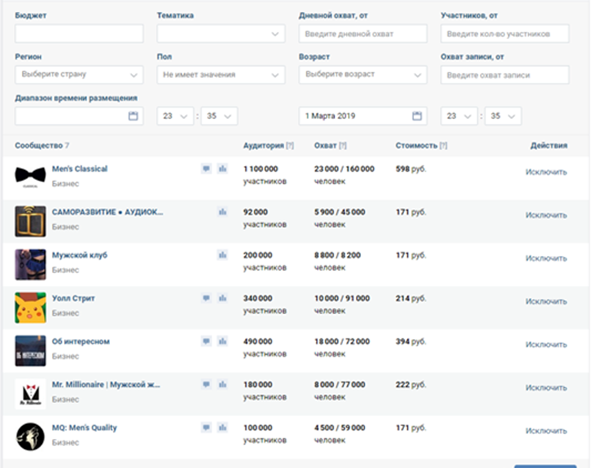 Таким образом, вы получите список сообществ с потенциальными клиентами. И его вы можете использовать для настройки таргетированной рекламы: