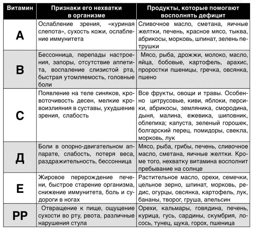 Признаки нехватки витаминов