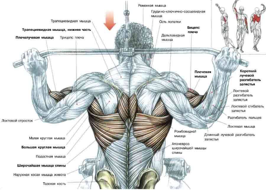 Широчайшие мышцы спины – одна из самых крупных мышечных групп в человеческом теле. Для ее всесторонней проработки требуется включать в программу упражнения как на развитие ширины, так и на ее уплотнение. Тяга верхнего блока за голову – одно из лучших упражнений для расширения спины. С его помощью можно добиться выраженной V-образной фигуры, что является эталоном для многих мужчин.