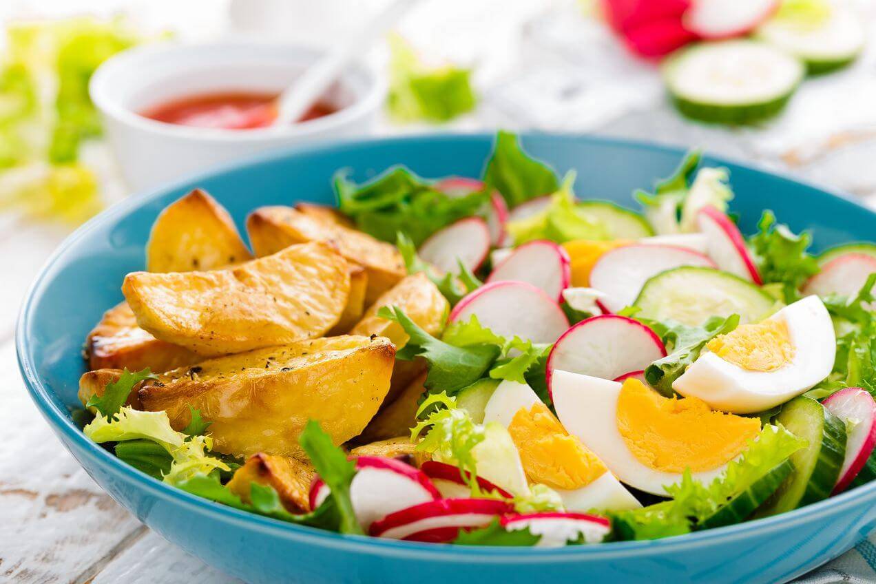 - Ужин: 170 г тушеной зеленой фасоли, 1 отварное яйцо, ломтик хлеба, 200 г салата с редисом и огурцами.