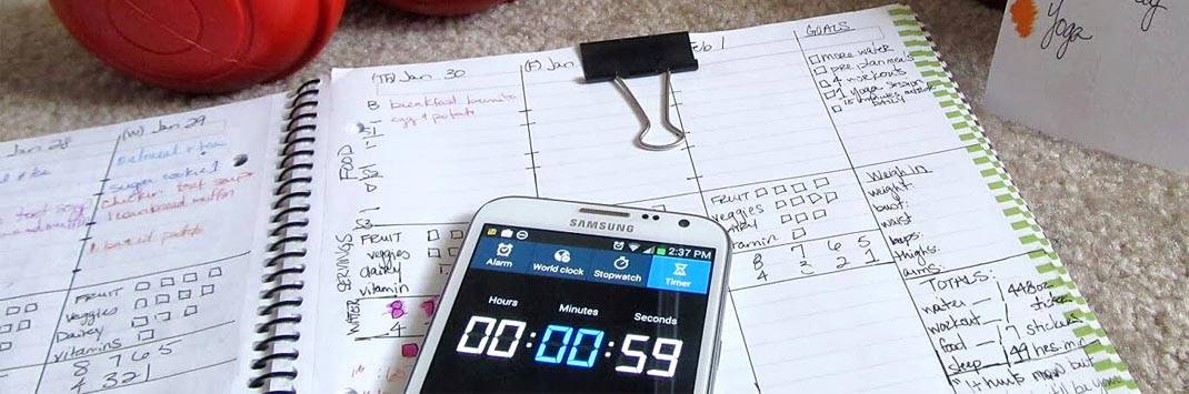 Универсальный вариант — записная книжка и лист бумаги с таблицей тренировок.
