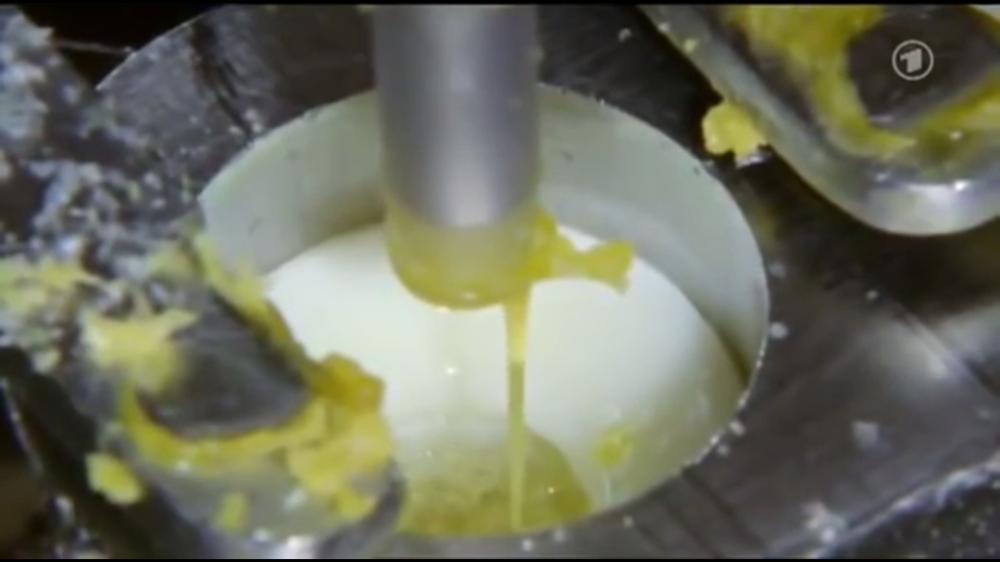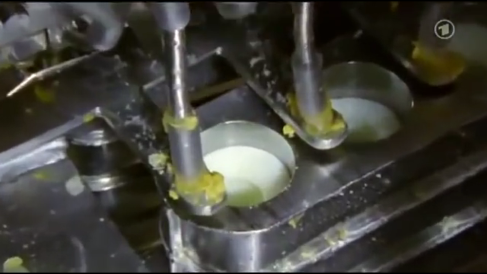 Производят такие яйца на заводе, берут обычные куриные яйца и заряжают ими конвейер. Желтки отделяются от белков, разливаются по разным емкостям. После белки помещаются в длинные специальной формы трубки, где происходит процесс варки.
