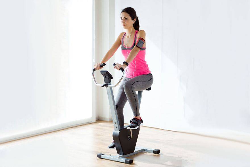 Велотренажер. Подходит для спортивных и оздоровительных занятий. В процессе тренировки на велотренажере укрепляется сердце, опорно-двигательная система. При интенсивных нагрузках развиваются диафрагма и легкие. Работают мышцы пресса, поясницы и бедер. При заболеваниях позвоночника и суставов лучше использовать горизонтальные модели.