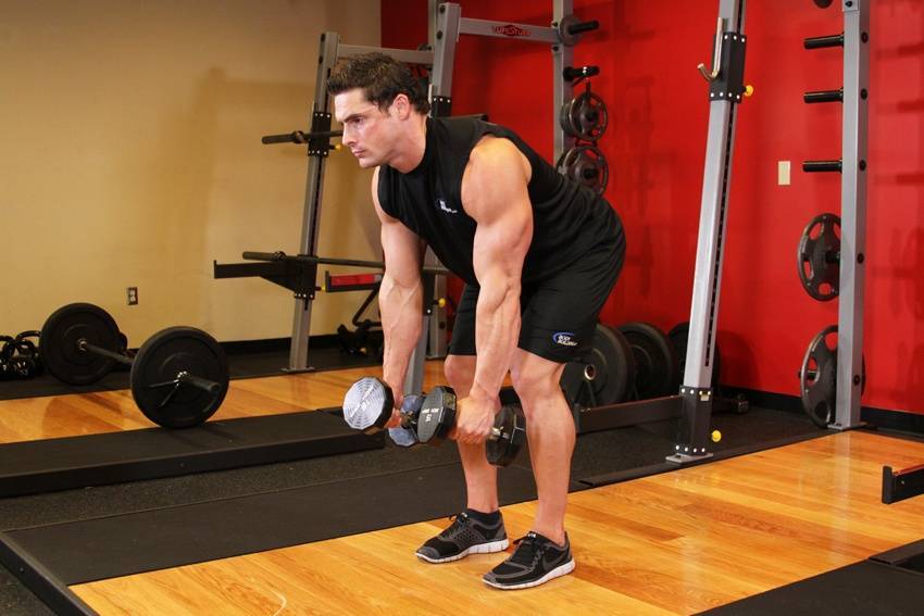 - Тяга штанги в наклоне 2 подхода х 8 повторений