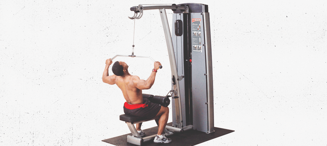 Подходит для развития широчайших мышц спины, также задействует ромбовидные мышцы и бицепсы. Тяга верхнего блока является отличной заменой стандартным подтягиваниям. Она хорошо подходит для начинающих, так как позволяет регулировать вес, что невозможно при выполнении подтягиваний, и к тому же является более простым в исполнении упражнением. Есть два варианта выполнения: широким хватом и средним. От этого зависит, какие мышцы будут напрягаться больше.