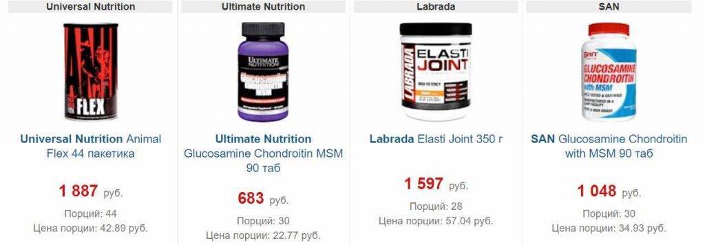 Посмотрите варианты препаратов, содержащих хондроксид и глюкозамин. Недорогой вариант Joint Flex Caps, стоит всего 570 рублей за 120 капсул. По отзывам, очень хорошо зарекомендовал себя препарат Glucosamine Chondroitin Msm, стоимостью 1520 рублей. Производство США, в баночке 180 таблеток.