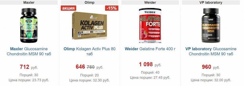 Вы можете выбрать любое из них или спросить в свой аптеке подобные препараты. Также можно приобрести коллаген, который предназначен для поддержания эластичности соединительных волокон. Коллаген помогает восстановить хрящевую ткань суставов и связок. Выбор очень широк. Стоимость составляет от 540 до 1600 рублей за баночку.