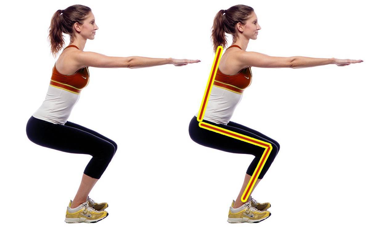 Фото 8. Во время упражнения “стул” спина и бедра составляют прямой угол