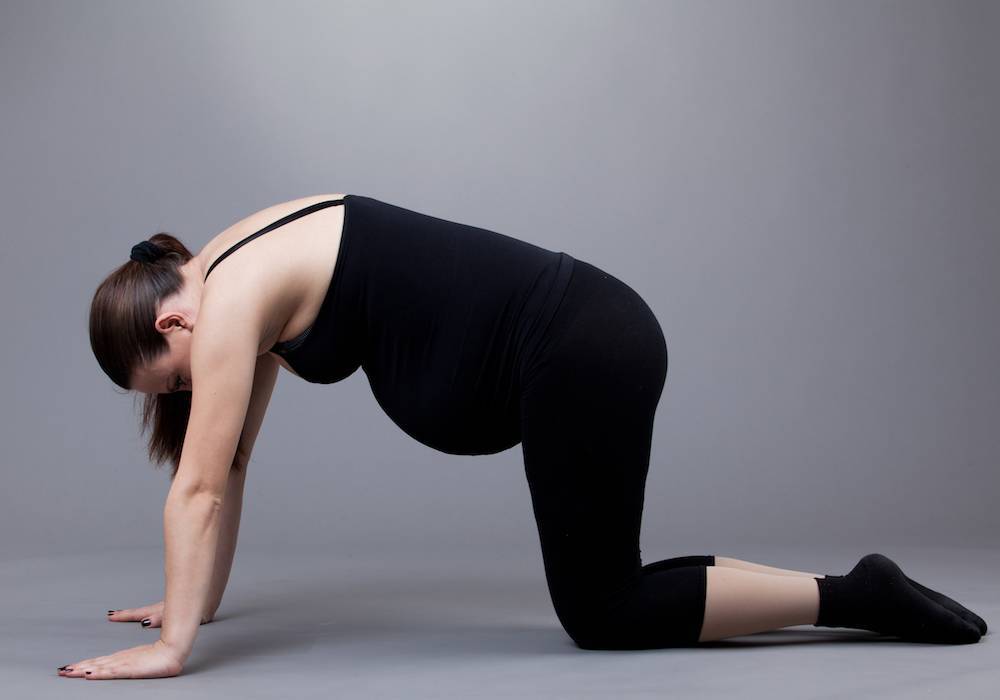 Кстати, обычная коленно-локтевая поза — это спасение для уставшей спины. Её сложно включить в комплекс упражнений для беременных, так как в ней нет повторяющегося действия, а лишь момент расслабления. Однако, не упомянуть ее нельзя. По мере роста живота, а также после тяжелого дня, вся прелесть этой статичной позы проявляется в полной мере, ведь нагрузка на спину и поясницу у будущей мамы с каждым днем становится всё больше и больше.