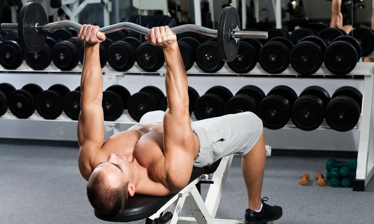 Найти свободный гриф – лучше всего подходит EZ, так как его изогнутая форма позволяет прокачивать весь трицепс.