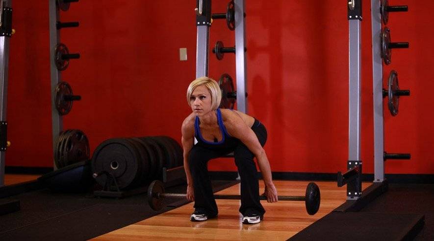 - Ровная спина. Взявшись за гриф, следует полностью выпрямить спину и сохранять ровное положение в процессе выполнения упражнения.
