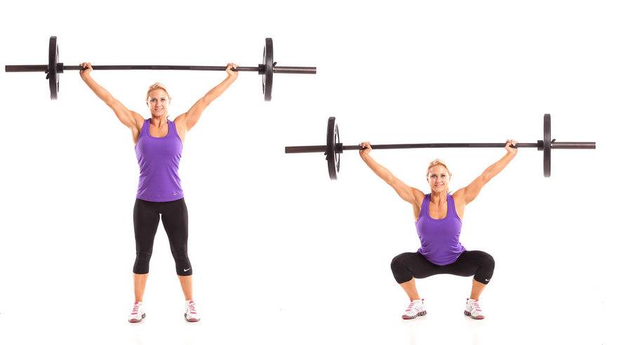 Приседания оверхед со штангой задействуют мускулатуру практически всего тела за счет вертикальной нагрузки. С его помощью можно эффективно развить мускулатуру ног, укрепить поясницу.