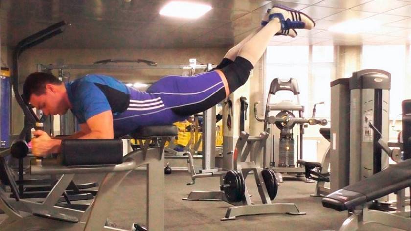 Обратная гиперэкстензия. Отличием заключается в том, что корпус в этом случае не выполняет движение, а находится в закрепленном положении, при этом работу производят только ваши ноги. При таком варианте гиперэкстензии основная нагрузка приходится на заднюю поверхность бедра, а также косых и прямых мышцы живота (пресса). Такая разновидность позволит сместить нагрузку и проработать другие участки мышц задней поверхности тела, кроме того, позволит избежать однообразия и монотонности тренировок;