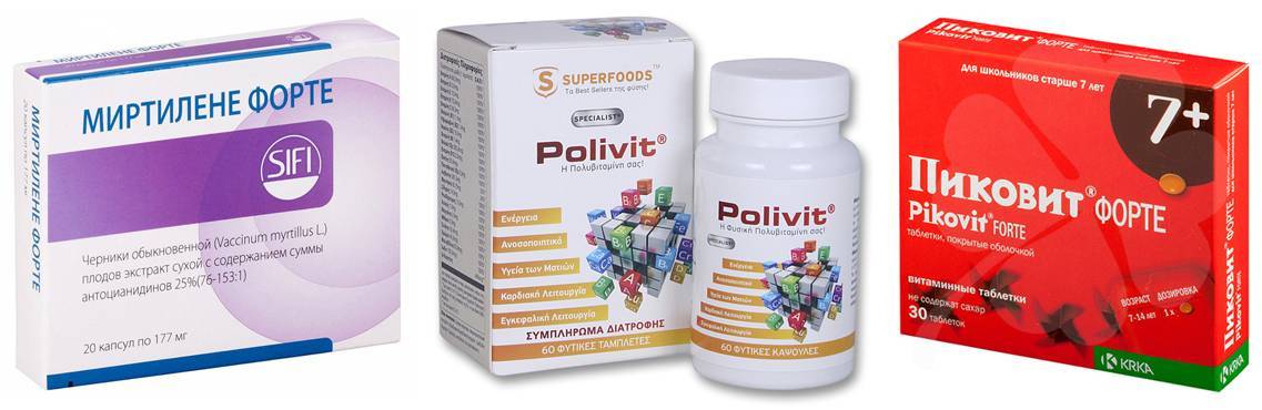 - на основе экстракта ягод черники, листьев петрушки (Визиомакс) считаются лучшим средством профилактики развития миопии на ранних стадиях;