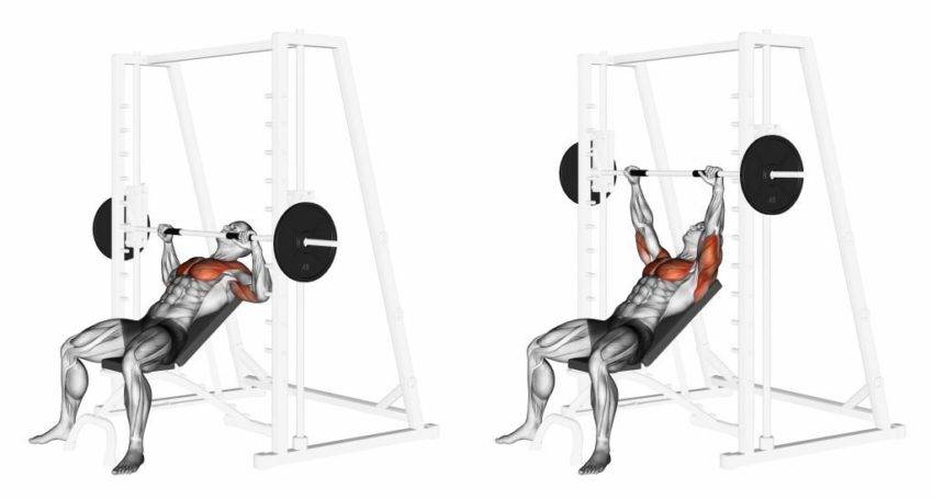 Так как упражнение относится к жимовым, то и нагрузка на те же мышцы, что и в классическом жиме. В зависимости от угла наклона, целевой частью может быть как низ, так и вверх грудных мышц. Рассмотрим более детально, какие мышцы участвуют в процессе выполнения упражнения: