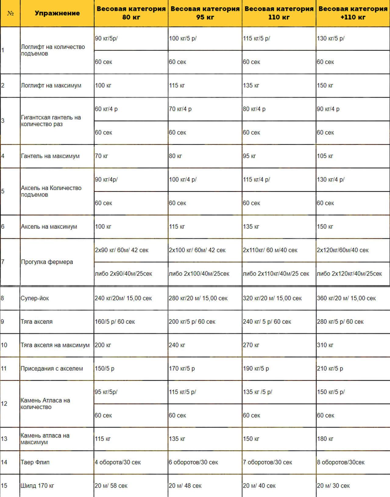 Для женщин наивысшим званием является Мастер спорта. Подробную таблицу с нормативами для каждой группы и упражнения можно посмотреть на официальном сайте дисциплины в РФ — .