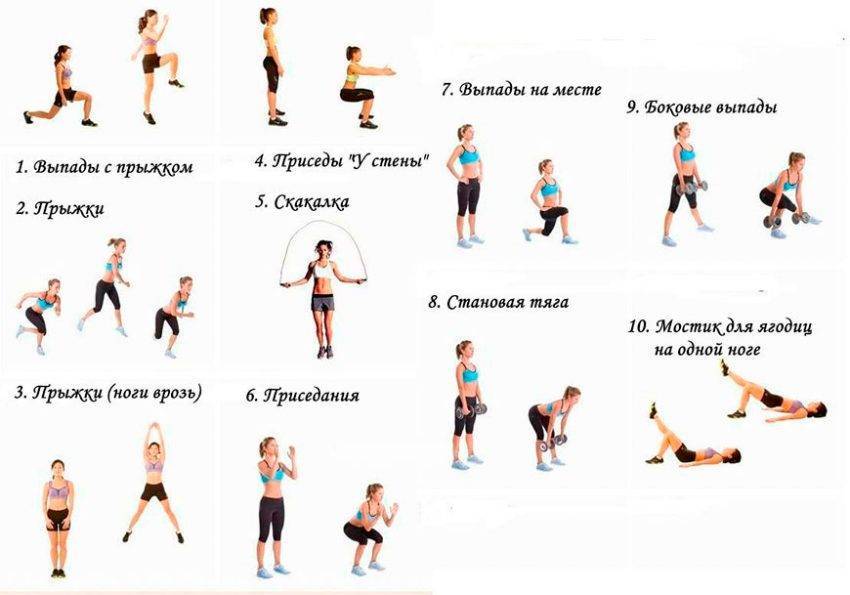 Часто ошибочно считают, что прыжки и выпрыгивания «качают» ноги. Многоповторные прыжки на скакалке, бег и прочая кардио активность, скорее, развивает выносливость. Для развития силы придется либо прыгать на опору, например, коробку высотой 50 см, либо выполнять движения с отягощением.