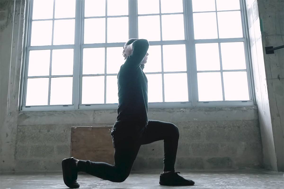 Для выполнения, нужна помощь двух страховщиков, которые будут сопровождать штангу, стоя по бокам. Выполняйте плавно, не допуская отбива колена от пола, следите за тем, чтобы впереди стоящее колено не двигалось по направлению к носку.