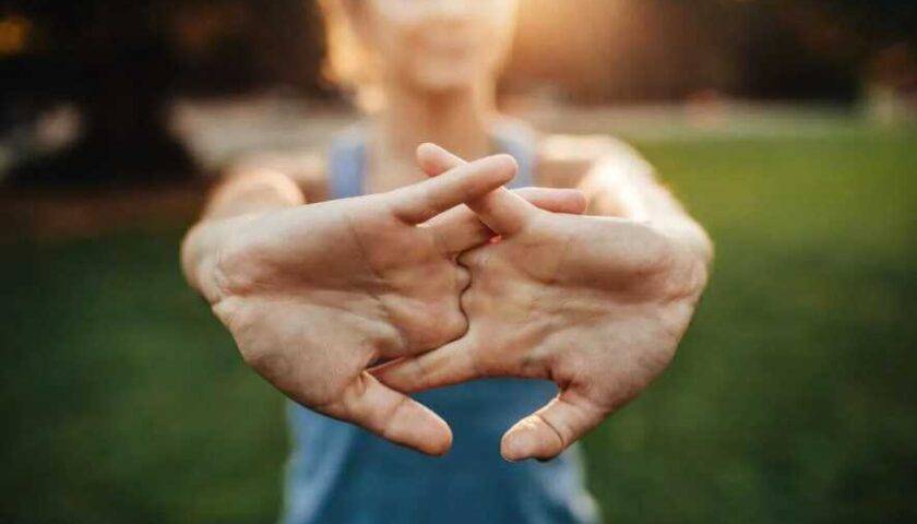 - Раздвиньте пальцы. Двумя пальцами одной руки постарайтесь развести каждые два пальца на другой руке как можно дальше друг от друга. Затем смените руки. После упражнения расслабьте пальцы и потрясите кистями.