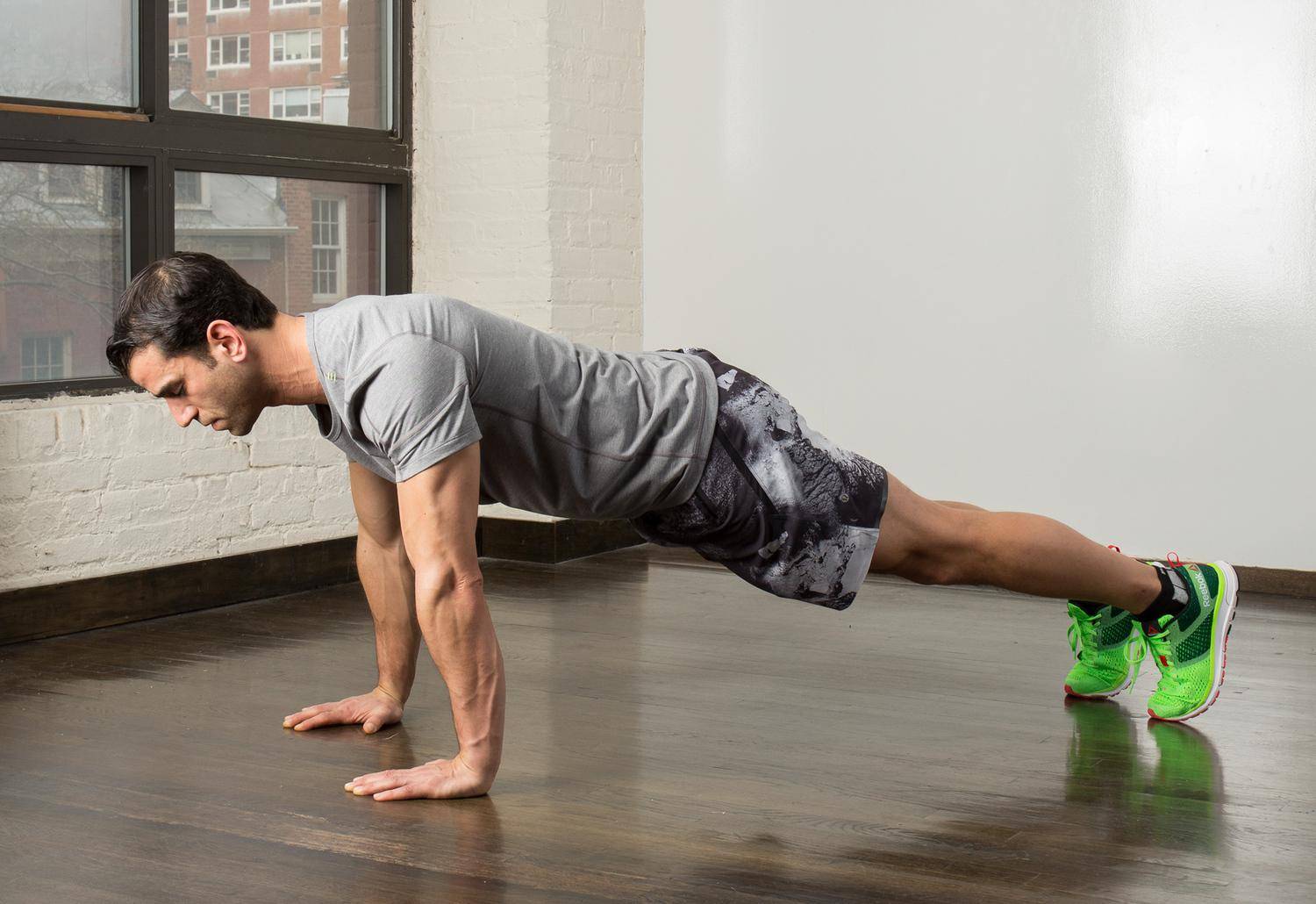 - Отжимания от пола на ширине плеч (можно чуть шире)