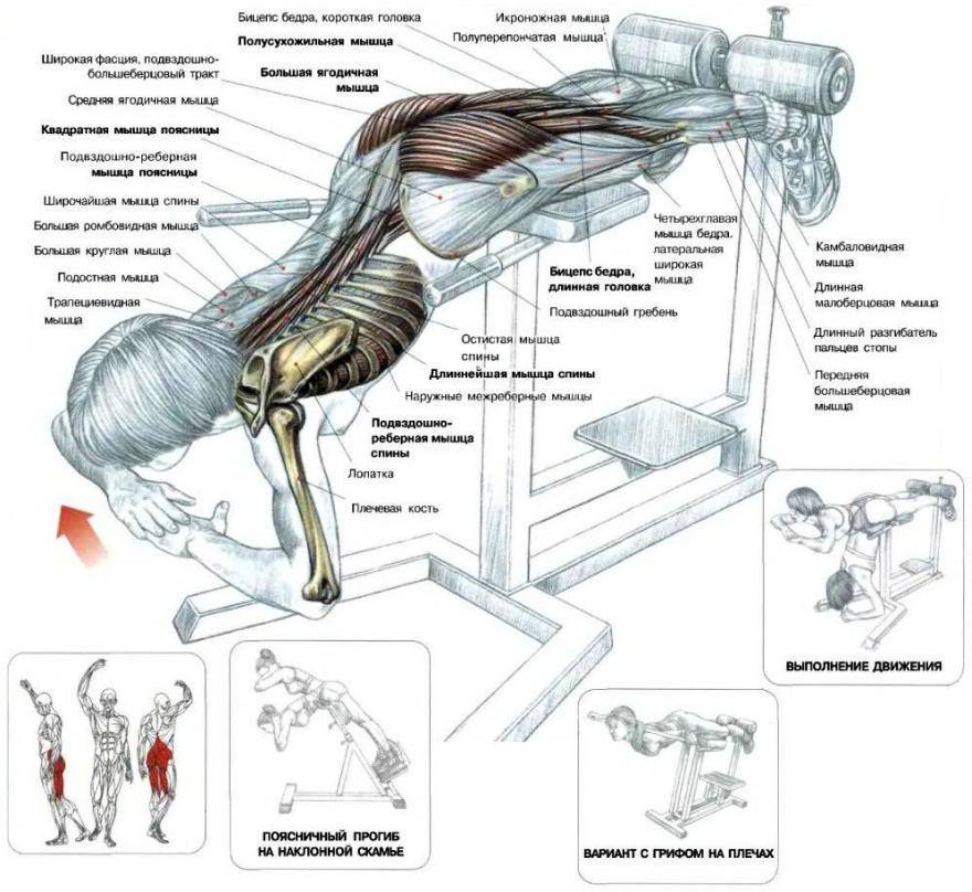 | Гиперэкстензия | Разгибатели позвоночника | – | Изолирующее | Для зала |