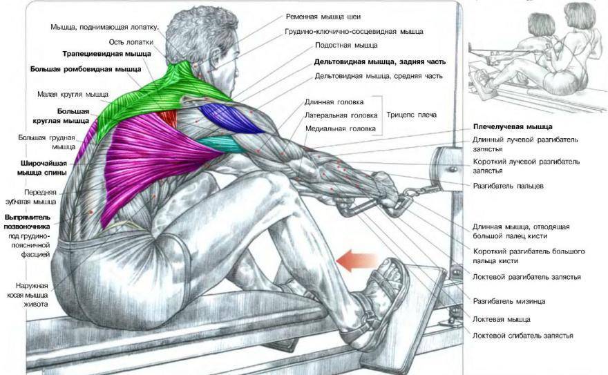 | Тяга горизонтального блока | Ромбовидные | Широчайшие | Изолирующее | Для зала |