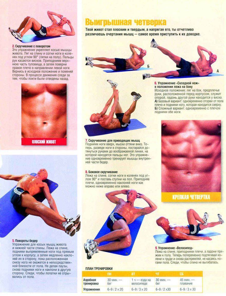 Для того чтобы натренировать свою нервную систему на такую работу, третью неделю нужно посвятить упражнениям для пресса в домашних условиях, с фото и видео которых можно ознакомиться в сети.