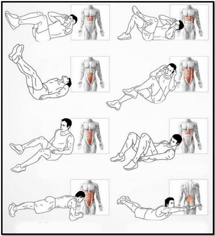 Для появления кубиков за неделю нужно выполнять предложенный комплекс для укрепления мышц: