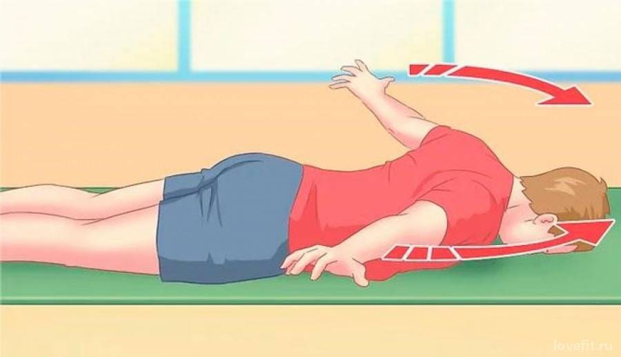 «Снежный ангел». Лягте на живот, начните руками описывать круг, разводя их как можно шире. Руки должны двигаться, описывая в воздухе силуэт «ангельских крыльев» от бедер до головы. Упражнение хорошо тренирует трапециевидные, широчайшие группы мышц. Делайте по 5 повторов в 3 подхода.