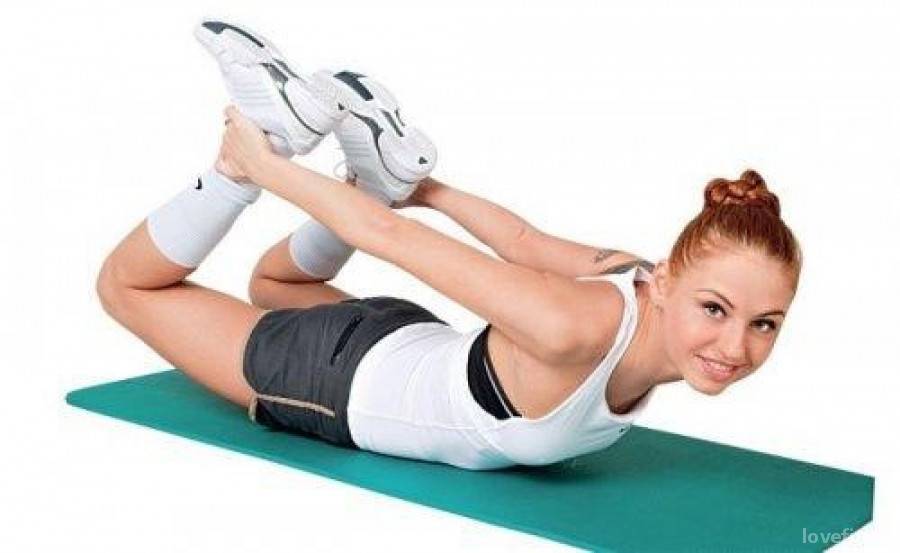 «Лодочка». Несложное, доступное упражнение. Лягте на живот, согните ноги в коленях, обхватите голени ладонями. Начните раскачивающиеся движения вперед-назад. Сделайте 3 подхода по 15 раз.