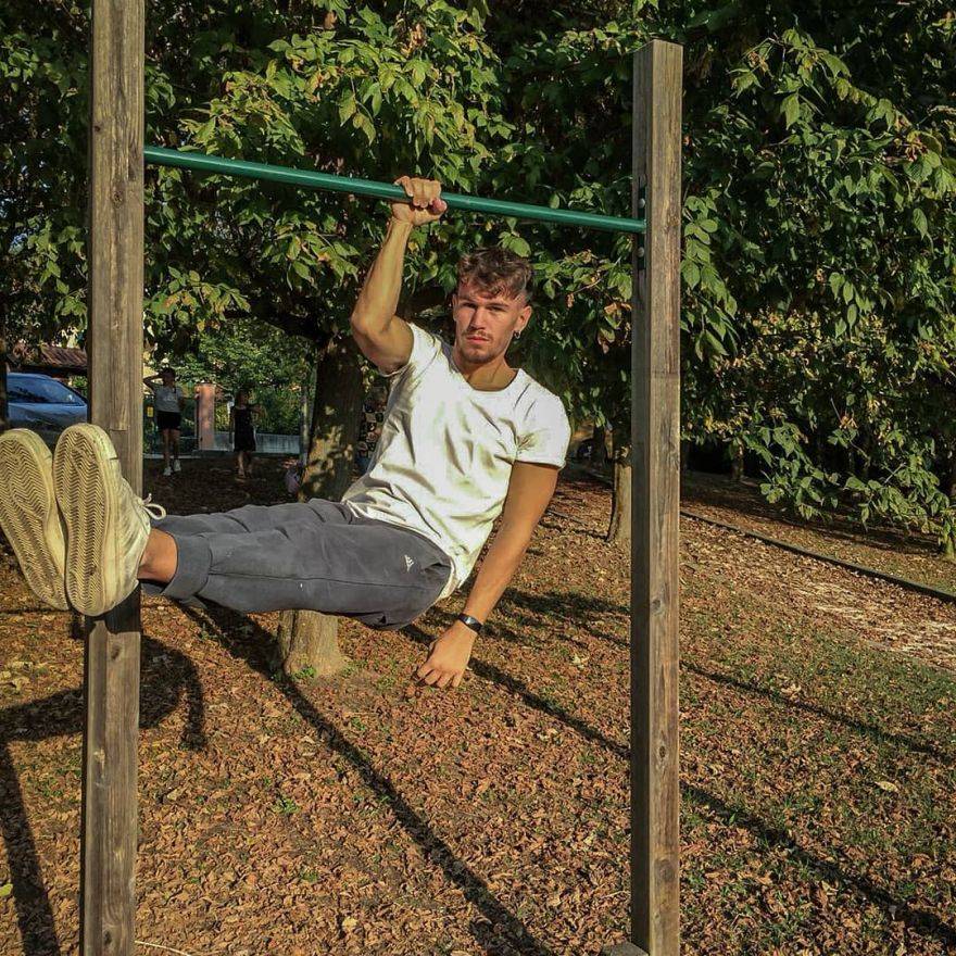 - Прямая мышца живота, она же пресс – поднимает и опускает таз, сгибает позвоночник, тянет ребра и грудную клетку. Тренируется на турнике, когда во время подтягиваний задействуют ноги/таз.