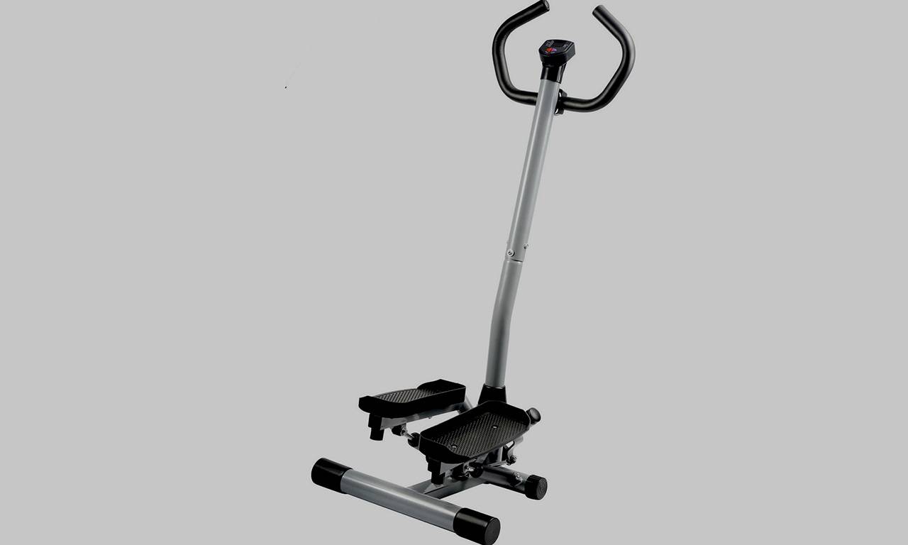 - Поворотный степпер – предполагает наличие поворачивающейся двуручной рукоятки — рычага для движений корпусом одновременно с шагами, развивающих мышцы таза и живота.