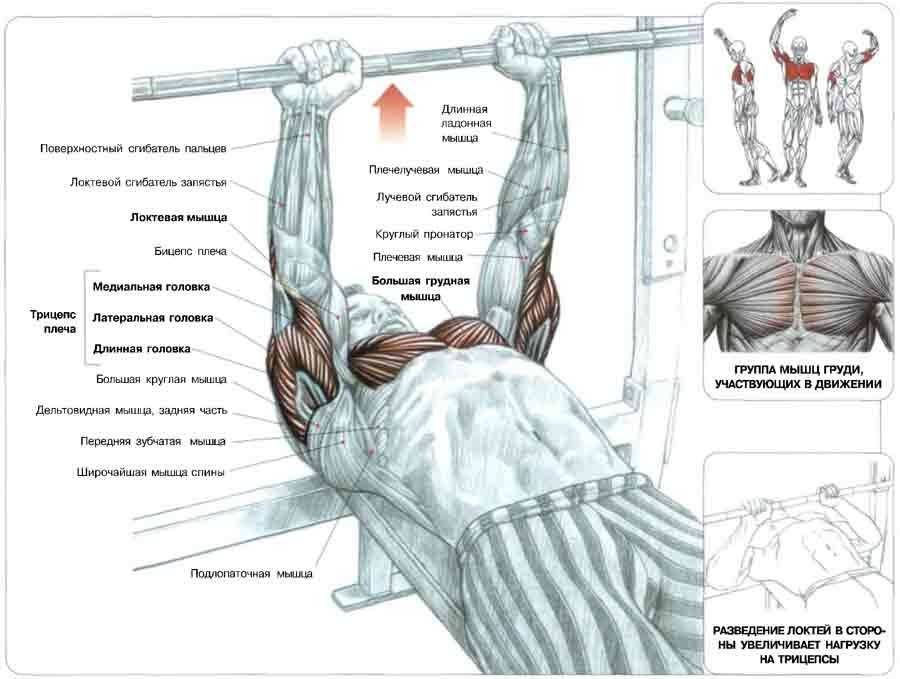 Какие мышцы работают при упражнениях жима лёжа?