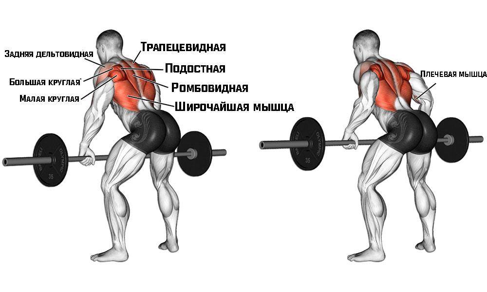 Наклоны со штангой на плечах, хорошо загружает мышцы спины и большую ягодичную мышцу, также хорошо воздействует на заднюю поверхность бедра.