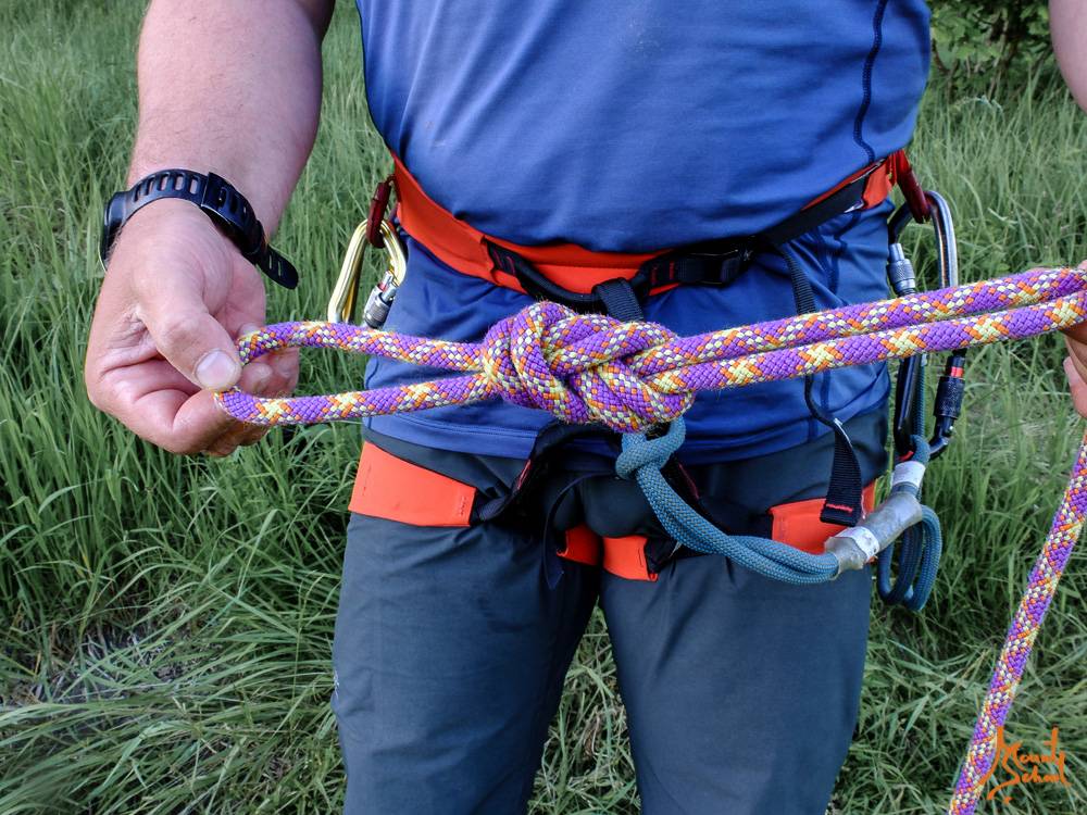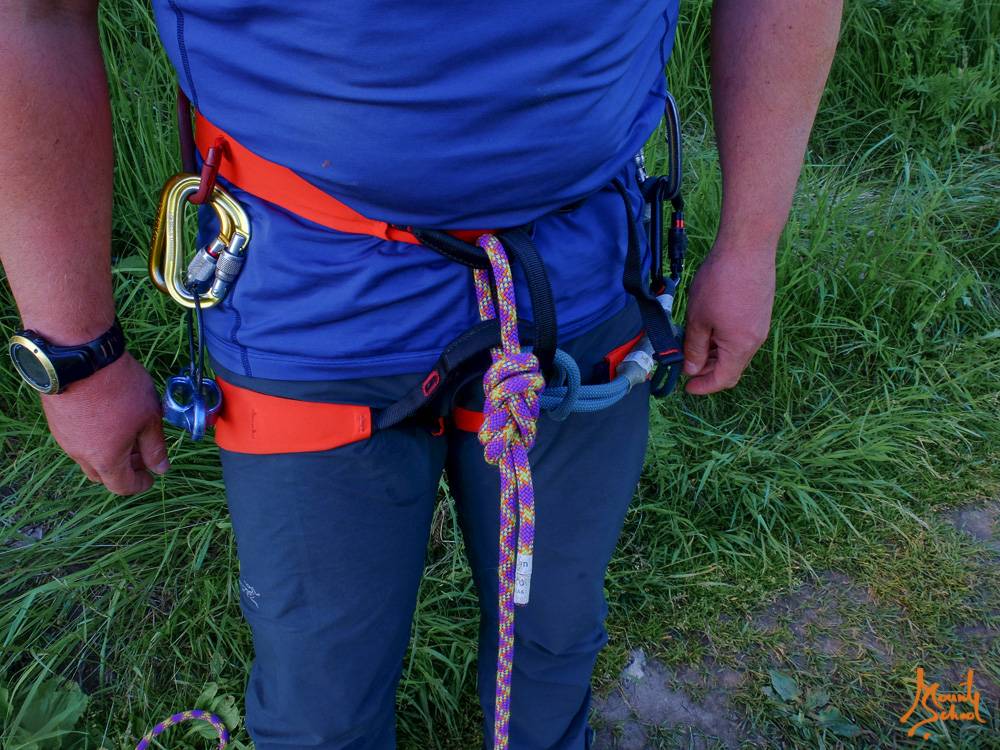 КРЕПЛЕНИЕ К ВЕРЕВКЕ ПРИ ВЕРХНЕЙ СТРАХОВКЕ