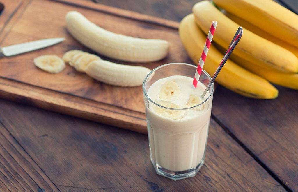 - В целом, протеиновый коктейль с бананом – отличный вариант для завтрака или перекуса. На один банан потребуется от 800 мл до литра базы (для похудения лучше взять йогурт, обезжиренный кефир; для набора массы – молоко или кефир с жирностью 2,5-3,2%), одна-две столовые ложки меда, 2 яйца, сухое молоко или белковый порошок.