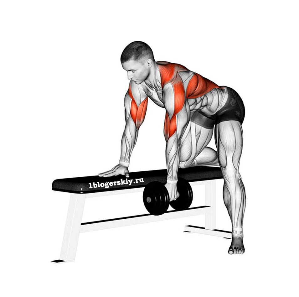 Тяга гантели в наклоне с упором на скамью, техника выполнения, какие мышцы задействованы