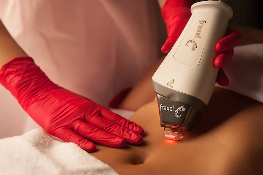 Фракционный фототермолиз или «Фраксель» — один из самых эффективных методов для лечения зрелых стрий. Прибор, с помощью которого проводят процедуру, разбивает общий лазерный поток, на много мелких лучиков. Эти лучи как бы прокалывают кожу, создавая в ней микроканалы. При этом клетки вокруг этих «проколов» остаются неповрежденными и начинают активно их заращивать. Регенерация происходит путем синтеза большого количества коллагена и эластина.