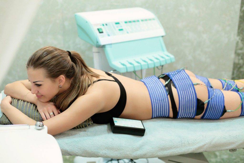 Суть метода: на кожу накладываются электроды, подающие импульс на нервные окончания. Сигнал от нейронов идет к мышцам и те начинают активно работать – сокращаться. Поле нескольких процедур-тренировок мышцам возвращается тонус и упругость, активизируется обмен веществ. Такие изменения особенно благоприятно отражаются на местах с растяжками.