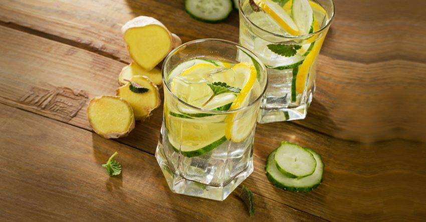 - Вода Сасси. Употребляется на голодный желудок в течение дня. В ней содержатся лимон, мед, мята, имбирь, огурцы. В напитке заключен антиоксидант бета-каротин, благодаря чуму он улучшает метаболизм и пищеварительные процессы.