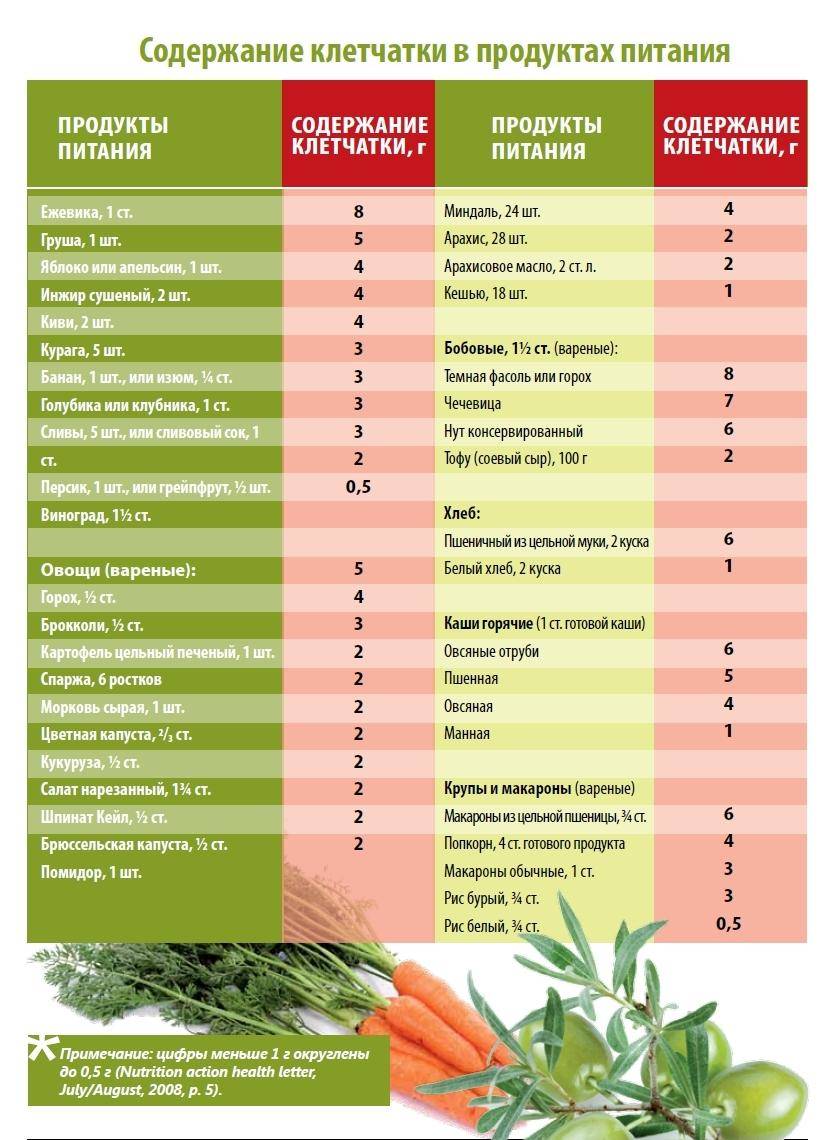 Список продуктов растительного происхождения, в которых содержится клетчатка