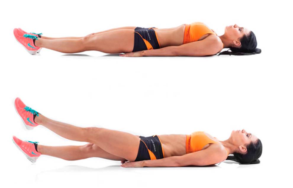 - Подъемы прямых ног из положения лежа – 3 подхода по 25 повторов на каждое.