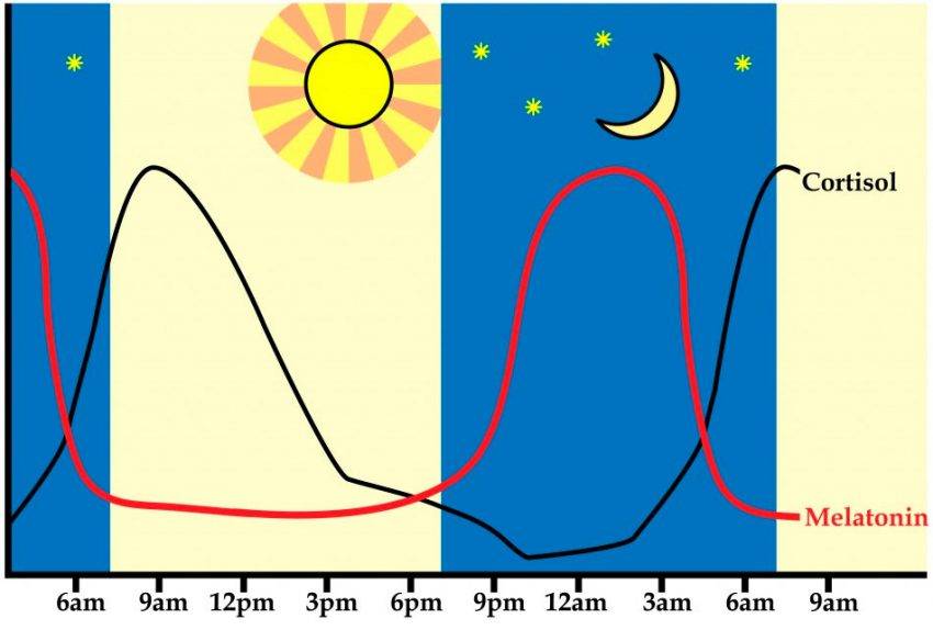 Последний является незаменимой аминокислотой Л-триптофаном. Наибольшая концентрация гормона в крови приходится на ночное время, а именно с полночи и до пяти утра. Наивысший пик достигается в 2 часа ночи. Днем уровень мелатонина снижается. Иными словами, когда человек бодрствует мелатонин понижается, а повышается во время сна.