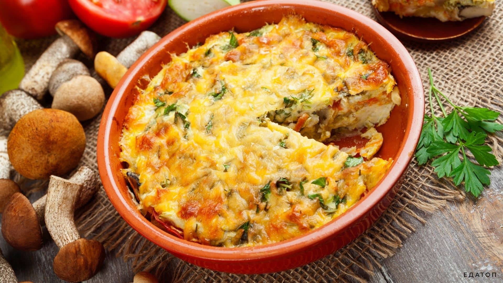 Запеканка из яичного белка с грибами и сыром тофу – полезное блюдо.