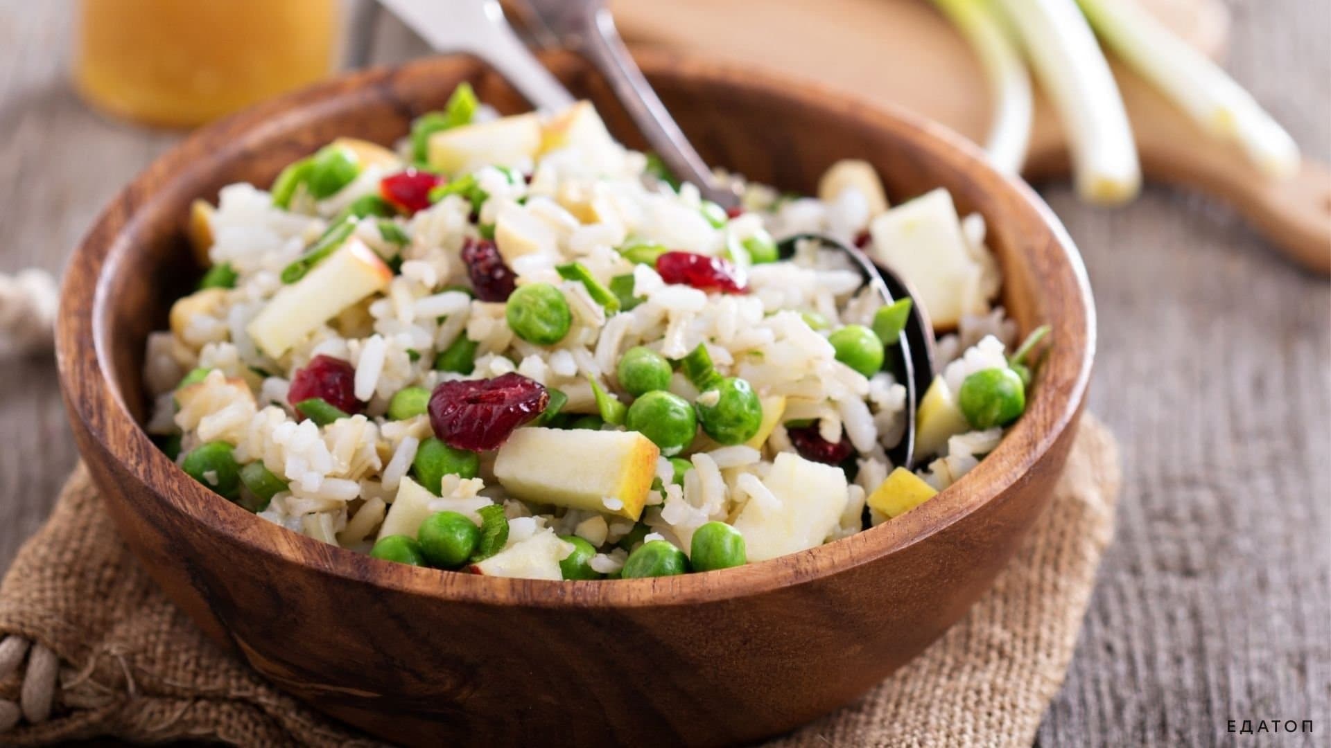 Рисовый салат с яблоком и сливочной заправкой по-французски